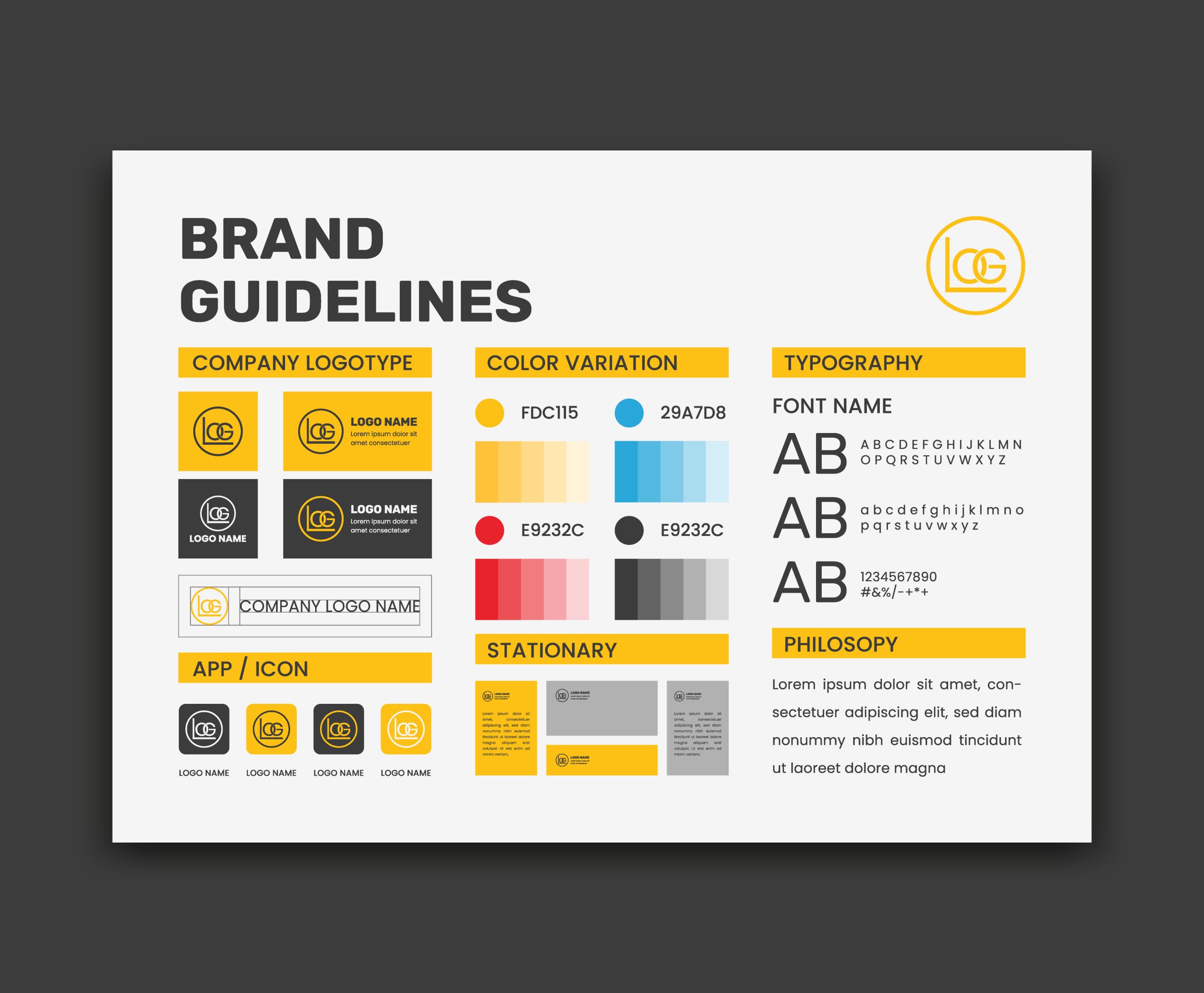 - Manual de Marca Básico (Construcción, área de seguridad, códigos de color y tipografías).